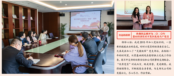 为深入学习贯彻 “两会”精神, 3月26日,中共浙江灵康党支部积极响应上级党委号召,围绕“2021年全国两会精神学习要点”展开专题教育活动,并对党史学习活动进行动员教育。专题教育活动由浙江灵康副总经理杨栋主讲,公司在杭高管、工会委员列席参加。