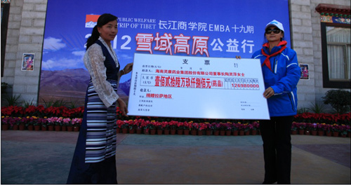2012年10月13日,公司董事长陶灵萍女士所在的长江商学院第十九期EMBA班组织的 “雪域高原公益活动”在西藏拉萨市城关区吉崩岗小学举行。捐赠活动上,公司分别向西藏拉萨、山南和林芝地区捐赠了价值1269800、1002200、1002200元的药品,其中包括注射用炎琥宁、注射用头孢唑肟钠等,合计价值327万元。