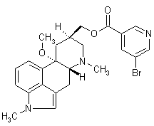 化学名称:10α-甲氧基-1,6-二甲基麦角林-8β-甲醇基-5-溴烟酸酯。