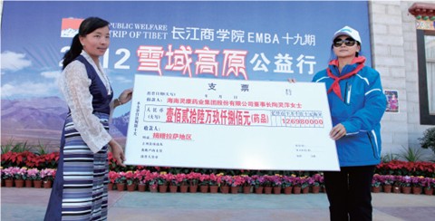 2012年10月13日,陶灵萍董事长参加了由长江商学院第十九期EMBA班学员——最高人民检察院公诉厅副厅长、西藏自治区人民检察院副检察长侯亚辉倡导的“雪域高原公益行”活动。陶灵萍董事长在西藏拉萨市城关区吉崩岗小学的捐赠活动上,代表灵康药业集团分别向西藏拉萨、山南和林芝地区捐赠了价值127万元、100万元、100万元的药品,其中包括注射用炎琥宁、注射用头孢唑肟钠等,合计价值327万元。